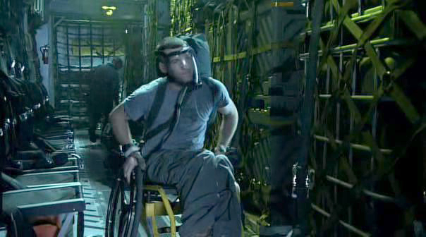 Jake receives a letter stating that his request for a spinal operation to restore his legs has been denied because the injury wasn’t sustained in a military operation. He was trying to help a civilian mother and child take refuge when he stepped on a mine. He sinks further into depression.